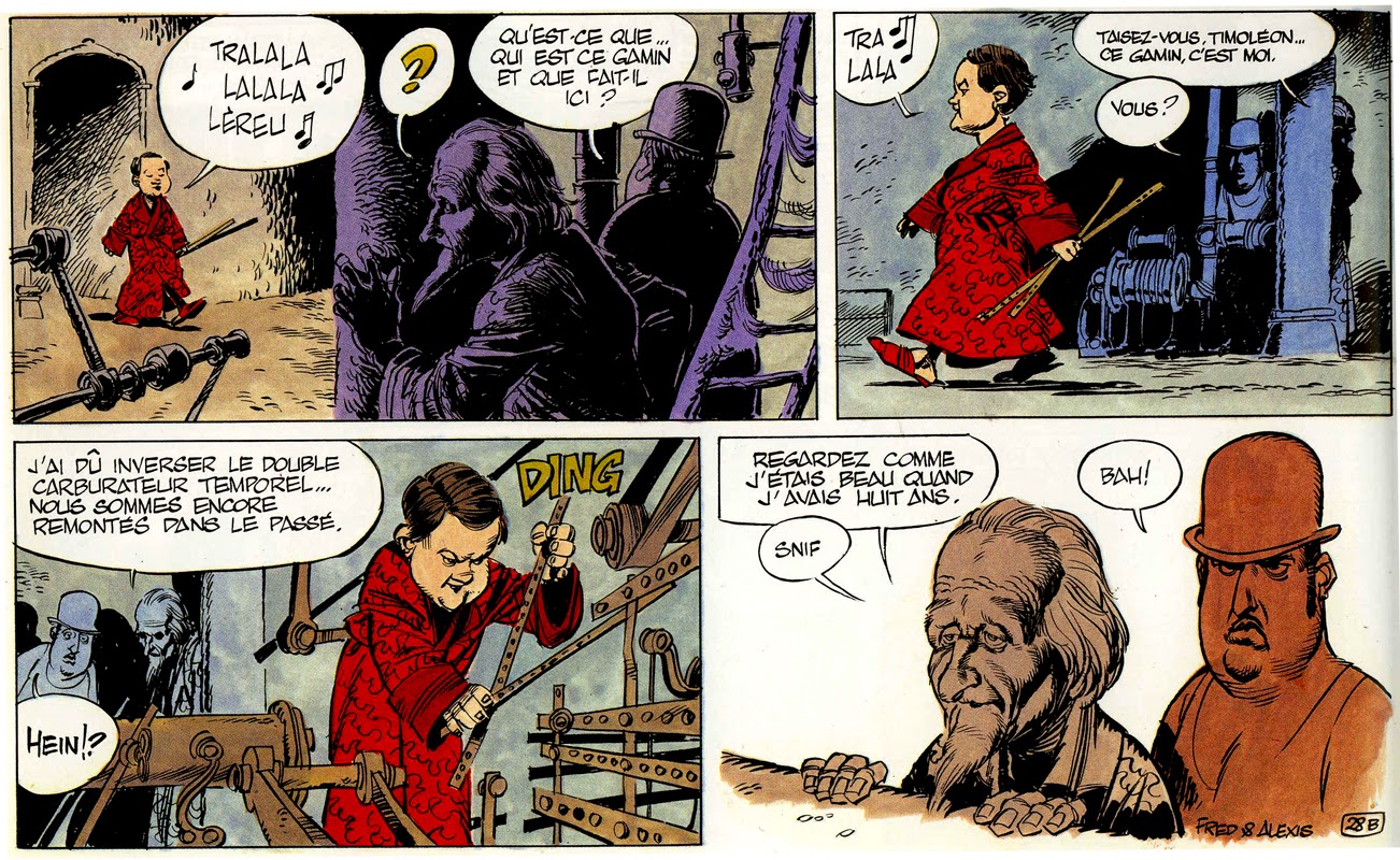 Prin anii '60, in celebrul saptamanal francez "Pilote", Fred & Alexis lanseaza un serial inspirat de romanul lui Wells, "The Time Machine" si de paradoxurile pe care posibilitatea traficului temporal le'ar putea produce: "Ils Voyagent dans le Temps pour de l'Argent", adicatelea, mai pe romaneste, "Calatoresc in Timp pentru Bani"...